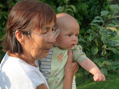U Turnovců jsme byli královsky pohoštěni, například čerstvým "krhanickým turnovcovským džemem". Hlavní pro úspěch návštěvy bylo, že Alička si od první chvíle zamilovala oba místní pejsky. Říkali jsme jí předem, že budou velicí, ale toto asi nečekala. Nicméně vůbec se nebála a hned se jala otírat o rozvernou Embu i klidnější Laru.
